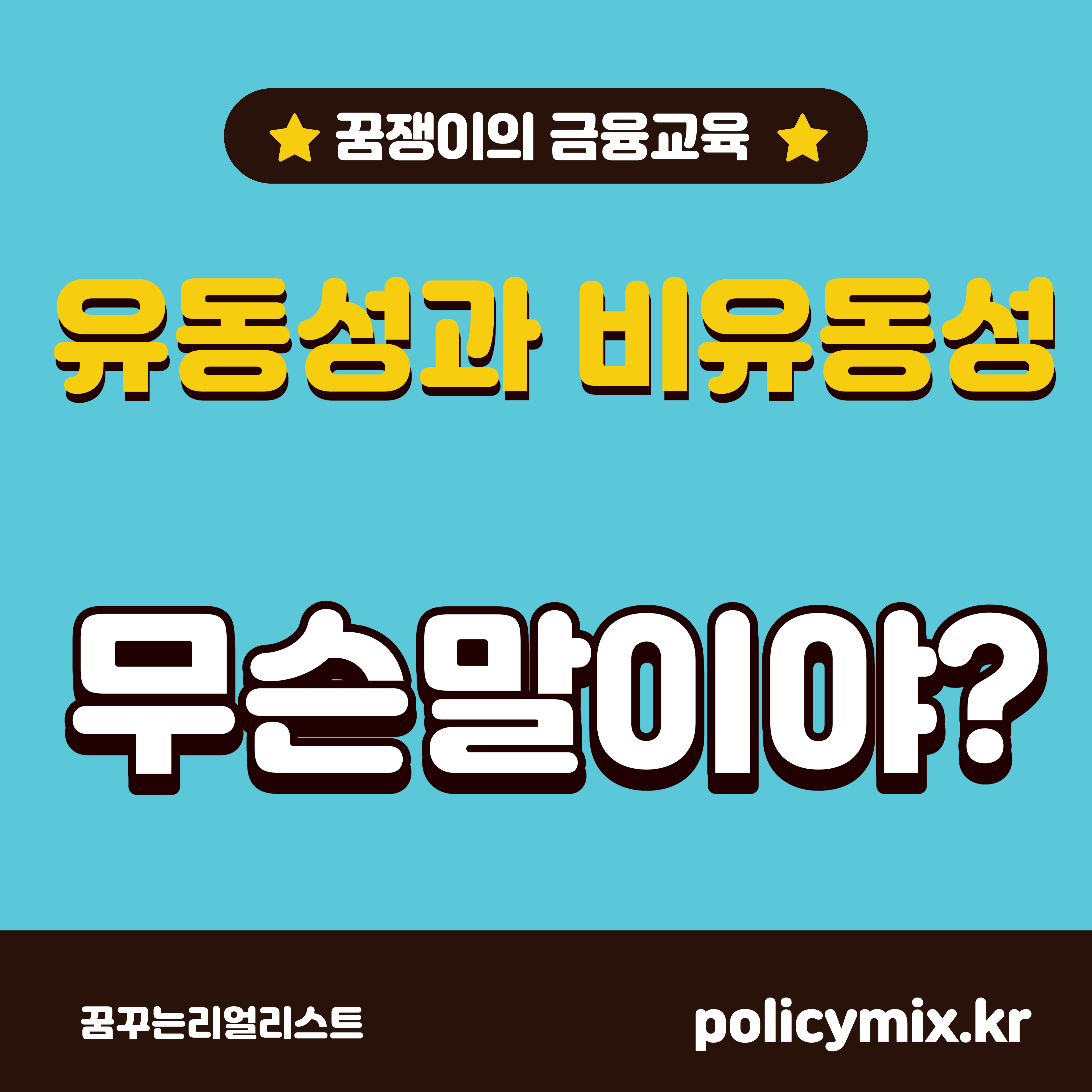 안녕하세요. 꿈쟁이 꿈꾸는 리얼리스트입니다. 오늘은 재미있는 두 단어 '유동성'과 '비유동성'에 대해 알아보려고 합니다. 유동성이란 얼마나 빨리 돈으로 바꿀 수 있는지, 반대로 비유동성은 얼마나 어려운지! 간단하게 말하면, '돈으로 쉽게 바꿀 수 있냐, 어렵냐' 문제입니다.