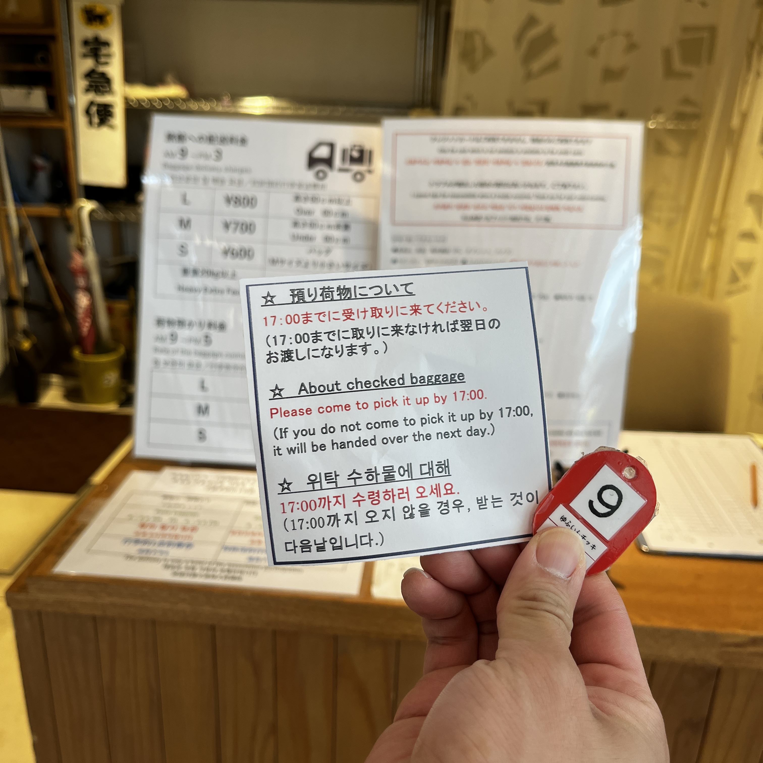 관광센터에서 보관하는 방법이 시간이 정해져 있어 불편하긴 하지만, 조금 저렴한 면이 있다. 숙소에서 가이세키도 즐겨야 하니 일찍 복귀해야 하니, 관광센터에 저렴하게 맡기는 방법이 좋습니다.
