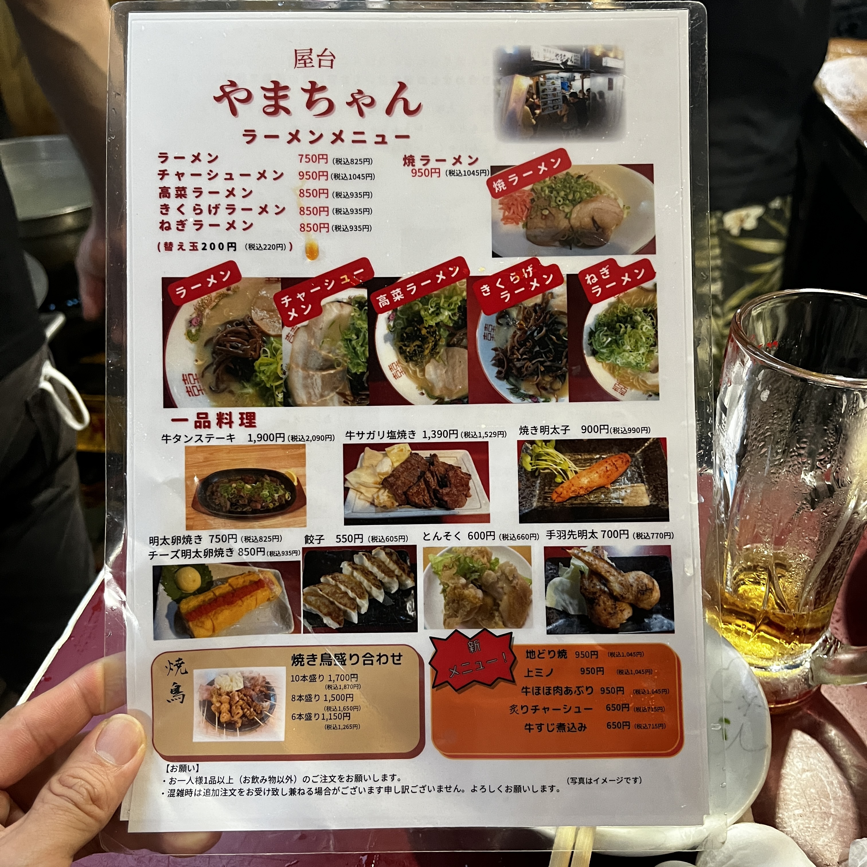 나카스강에 위치한 포장마차는 10개 정도 있습니다. 메뉴는 서로 비슷하지만 약간의 차이가 있으며, 저희가 방문한 곳은 라멘, 차슈멘, 갓라멘, 버섯라멘, 파라멘, 야키라멘이 있었고, 우설스테이크, 소등뼈 소금구이, 구운 명란, 명란계란말이, 만두 등 배부르게 먹을 수 있는 요리들도 많았습니다.