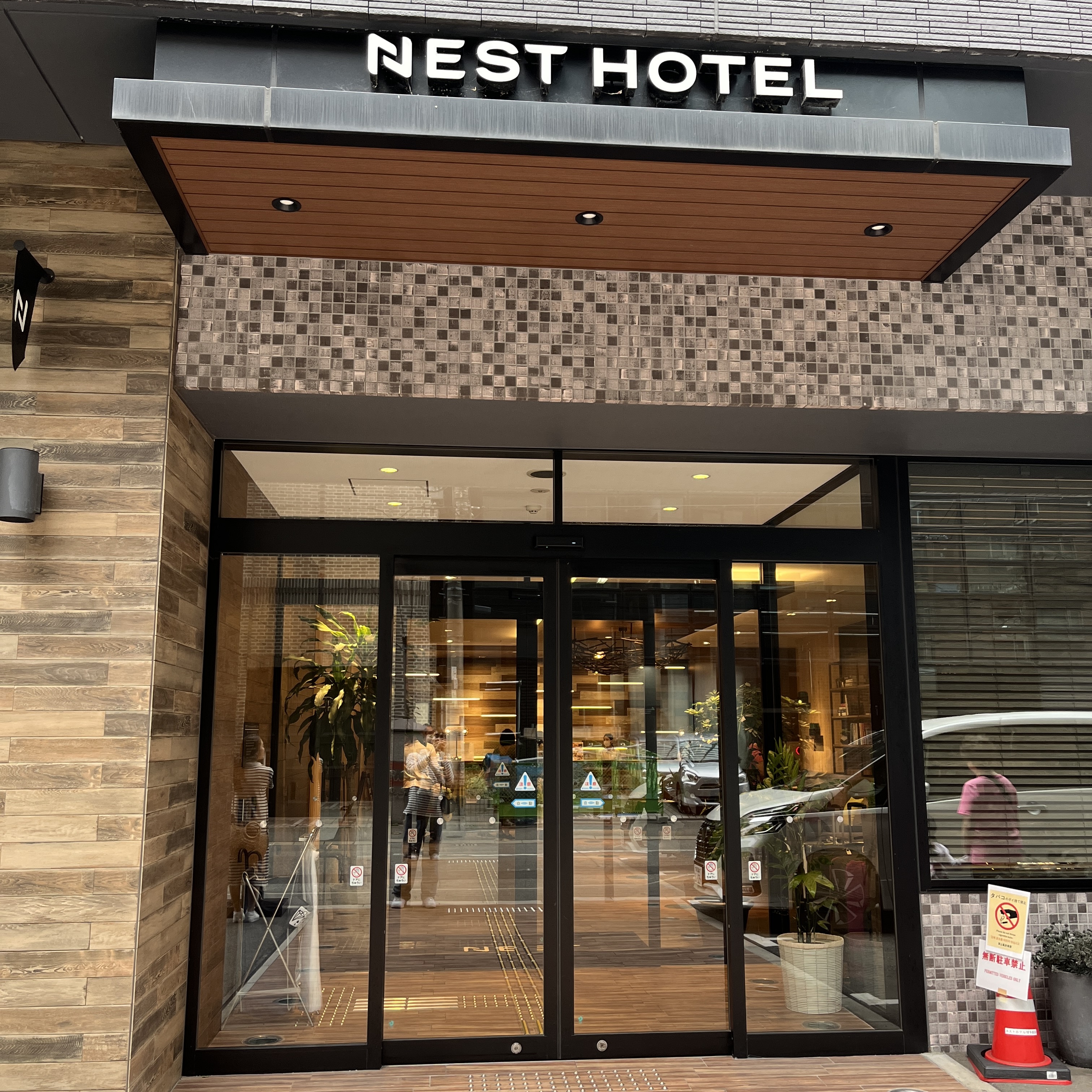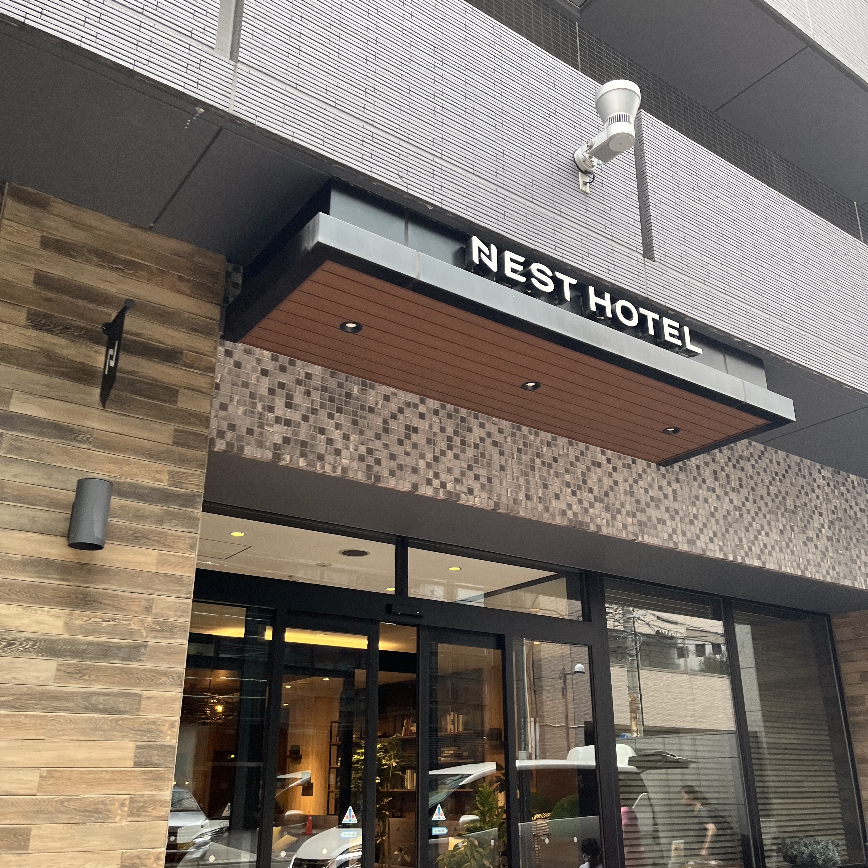 이렇게 도보로 약 5분 정도 걸어오게 되면 네스트호텔 입구가 보이는데요, 입구가 세련되고 심플해 보여서 마음에 들었습니다. 내부로 들어가 보면 더 세련되어서 좋은 느낌이 기억에 있습니다.