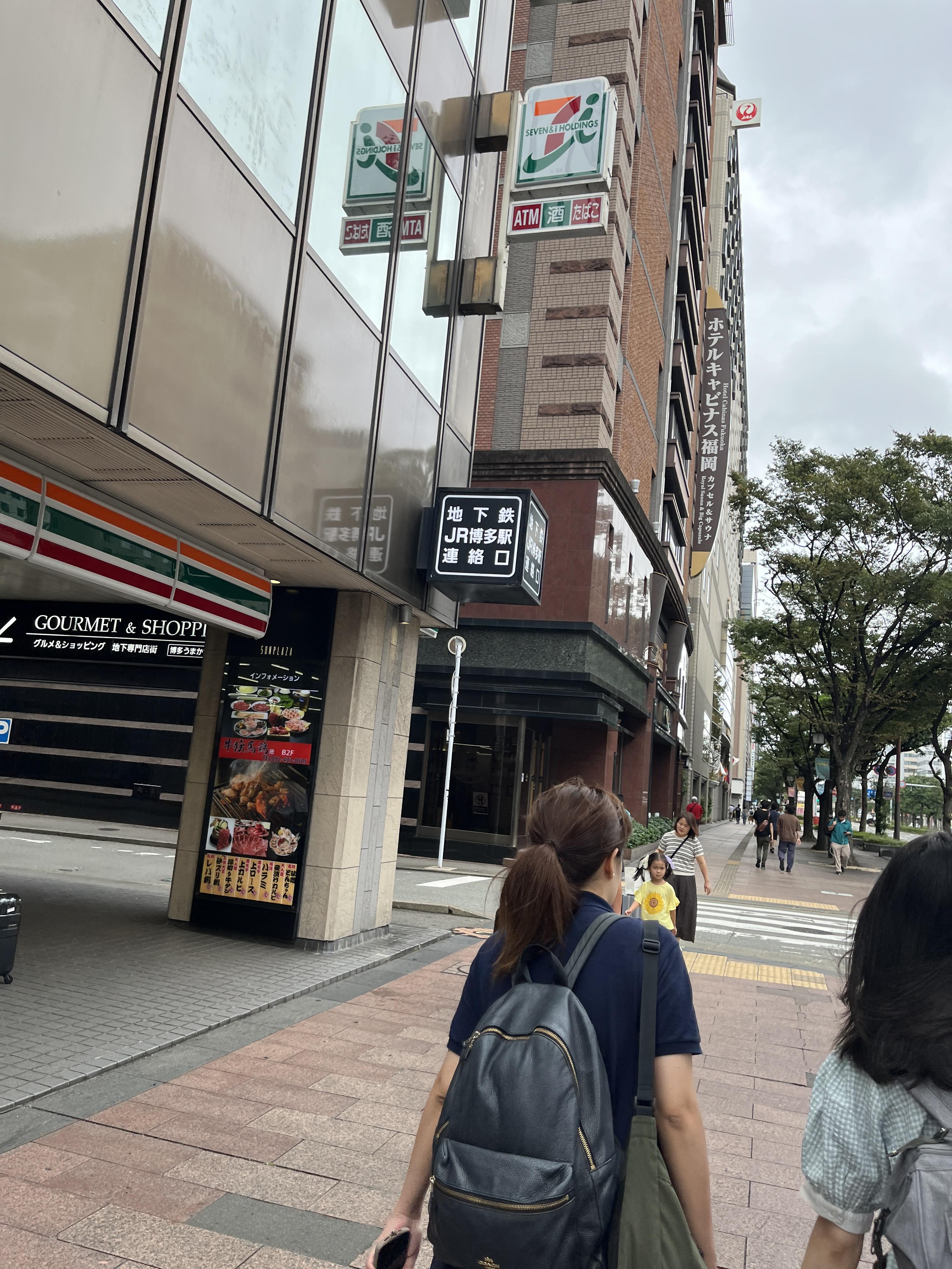 하카타역 네스트호텔은 공항버스 하차 후에 약 5분 정도 걸어서 도착할 수 있는 거리에 있는데요, 5분이라고 해도 신호등까지 포함한 시간이라서 멈추지 않고 걸을 수 있다면 3분 내외로 도착할 수 있을 거리인 것 같아요. 신호등도 연동신호라서 바로바로 건널 수 있었고, 가는 길에 편의 점도 있어서 호텔 들어갈 때 필요한 물건을 구입할 수 있었습니다.