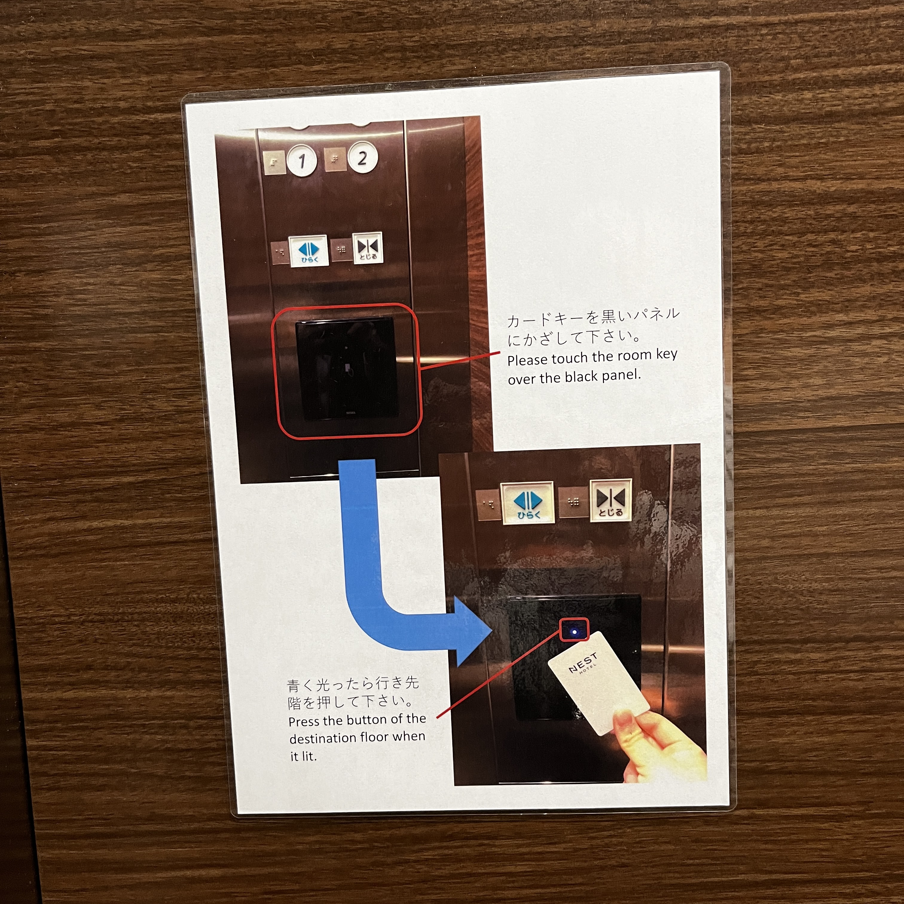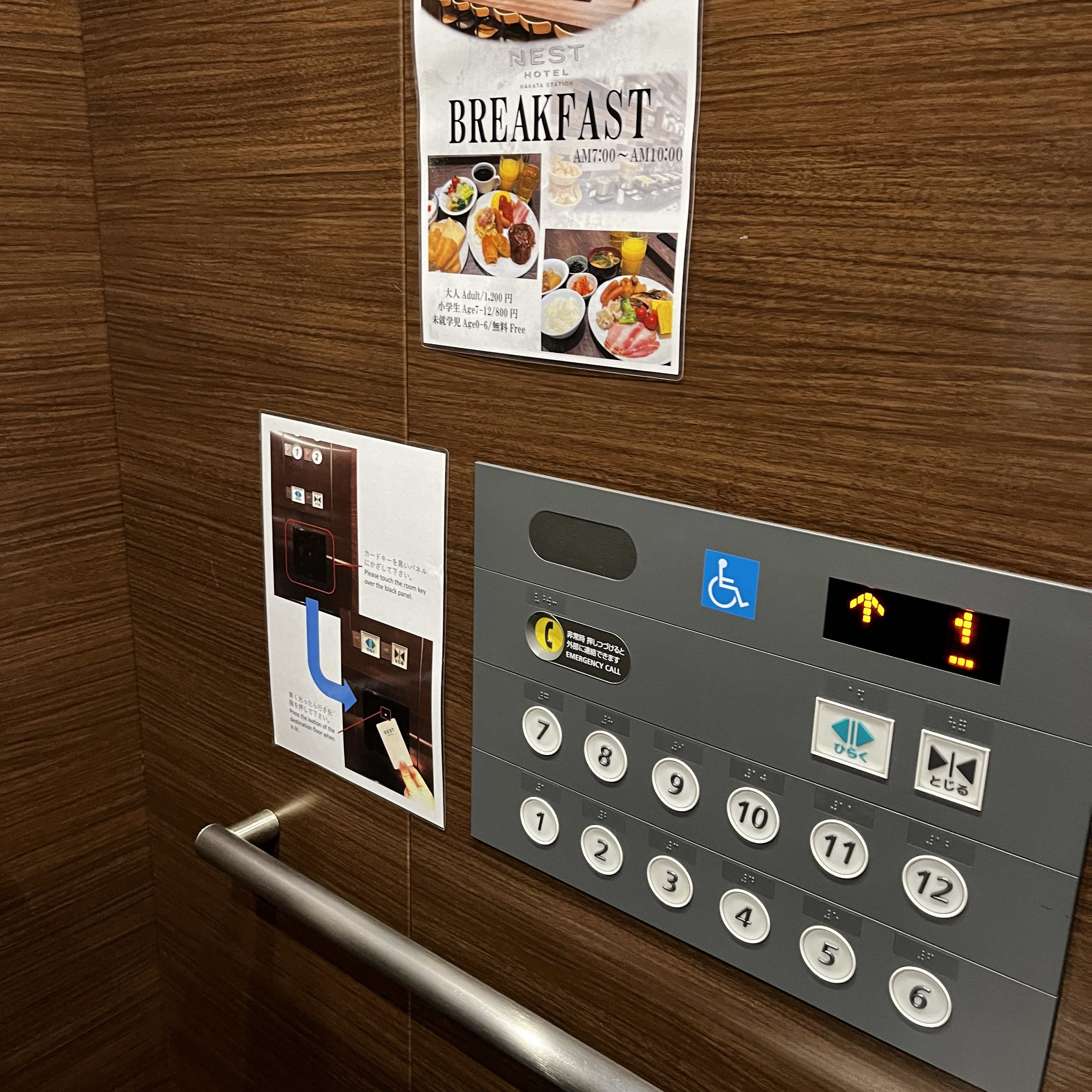 많은 호텔들이 도입하고 있는 보안 장치입니다. 객실키를 태그 해야지 그 객실 층만 이동하는 보안 장치입니다. 저희는 꼭대기층 제일 끝방에 머물렀기 때문에, 카드를 태그하고 12층으로 이동했습니다.