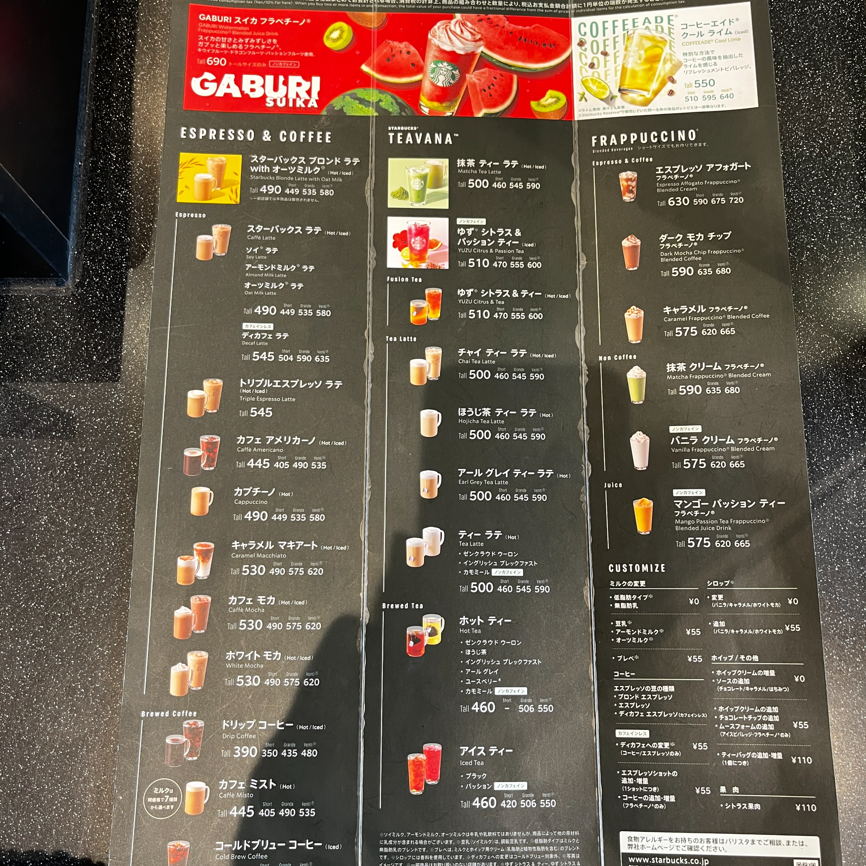 @ 스타벅스 메뉴판이다.