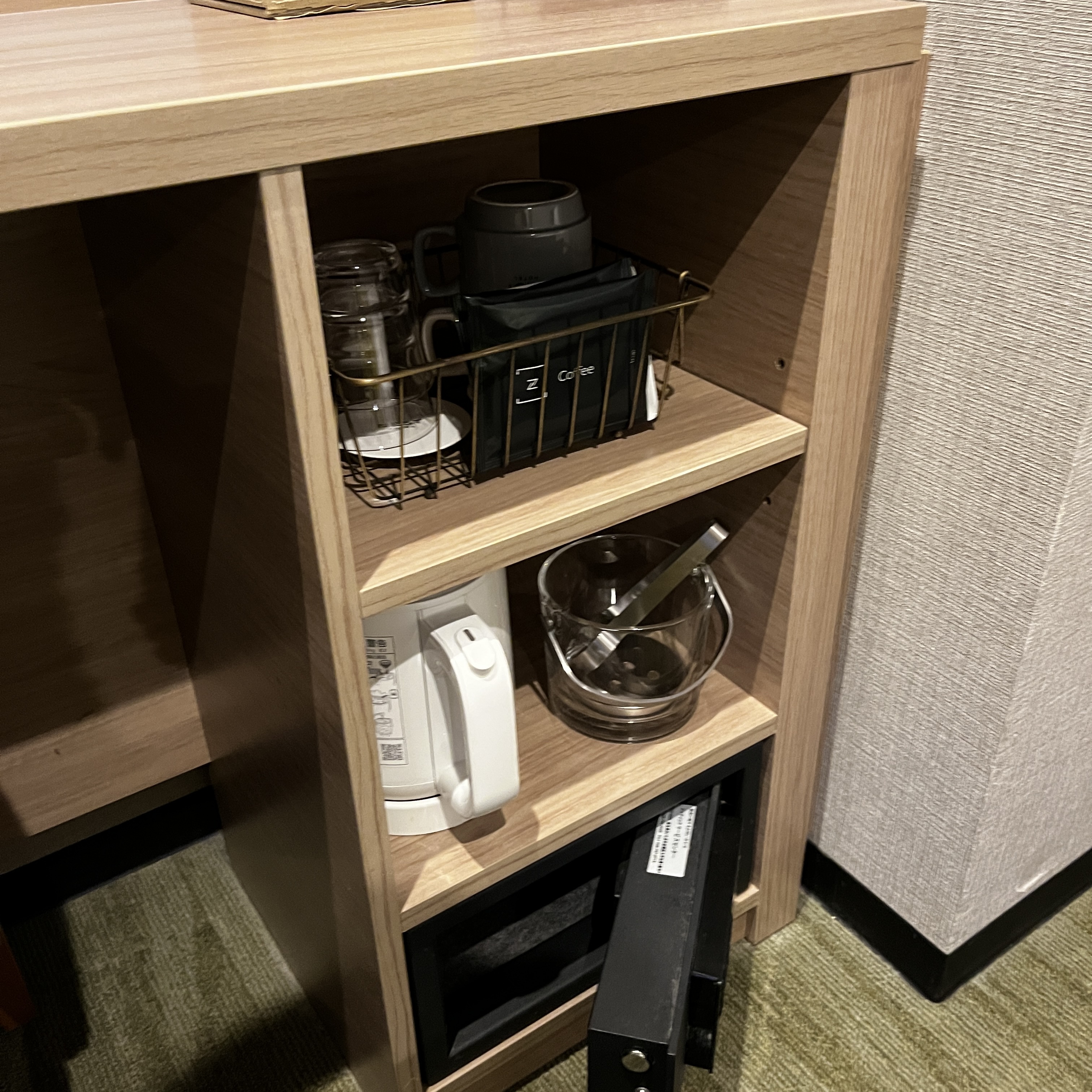 어느 호텔이나 이렇게 작은 미니냉장고가 구비된 곳이라면, 냉장고 성능이 많이 떨어지기 마련입니다. 하지만 네스트호텔에 구비된 이 작은 냉장고는 성능이 어찌나 좋던지 캔맥주가 아주 빠르게 살얼음 치는 느낌을 받았습니다. 숙소에 들어올 때 캔맥주를 사 와서 물티슈로 감싸 넣어 놓으니 정말 빠르게 시원해졌습니다.