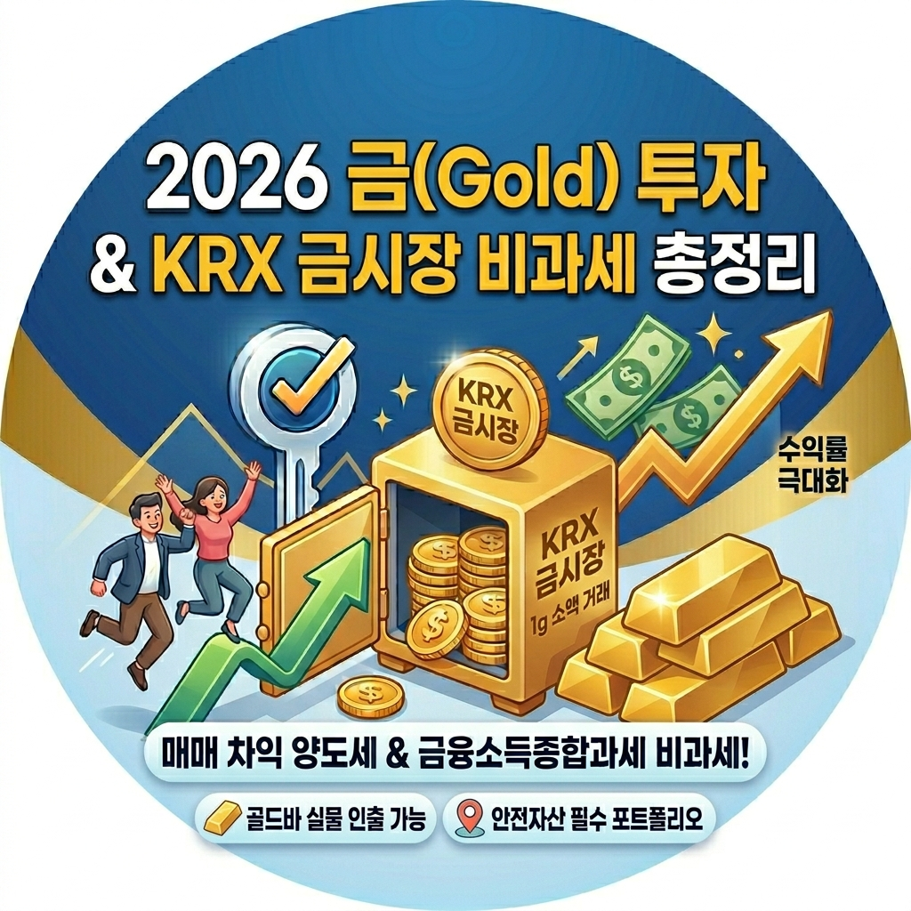 금 투자의 고수들이 입을 모아 추천하는 방식은 'KRX 금시장'입니다. 한국거래소에서 운영하는 이 시장은 증권사 계좌를 통해 주식처럼 간편하게 금을 거래할 수 있습니다. 2026년 현재 KRX 금시장의 가장 큰 장점은 바로 '비과세'입니다. 매매 차익에 대해 양도소득세가 전혀 붙지 않으며, 금융소득종합과세 대상에서도 제외됩니다.